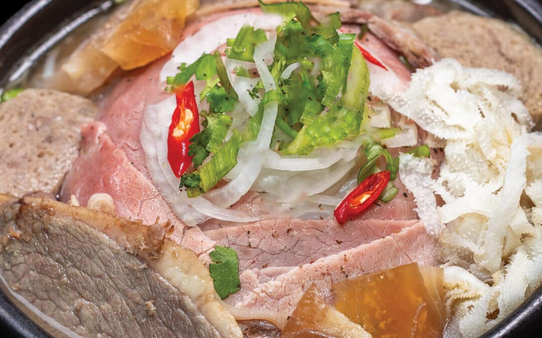 Looking for something extra indulgent? The Phở Deluxe is a must-try for anyone who wants the full Vietnamese pho experience. It’s a celebration of variety — tender short ribs, eye-round steak, flank, fatty brisket, soft tendon, tripe, and meatballs all come together in one hearty bowl.